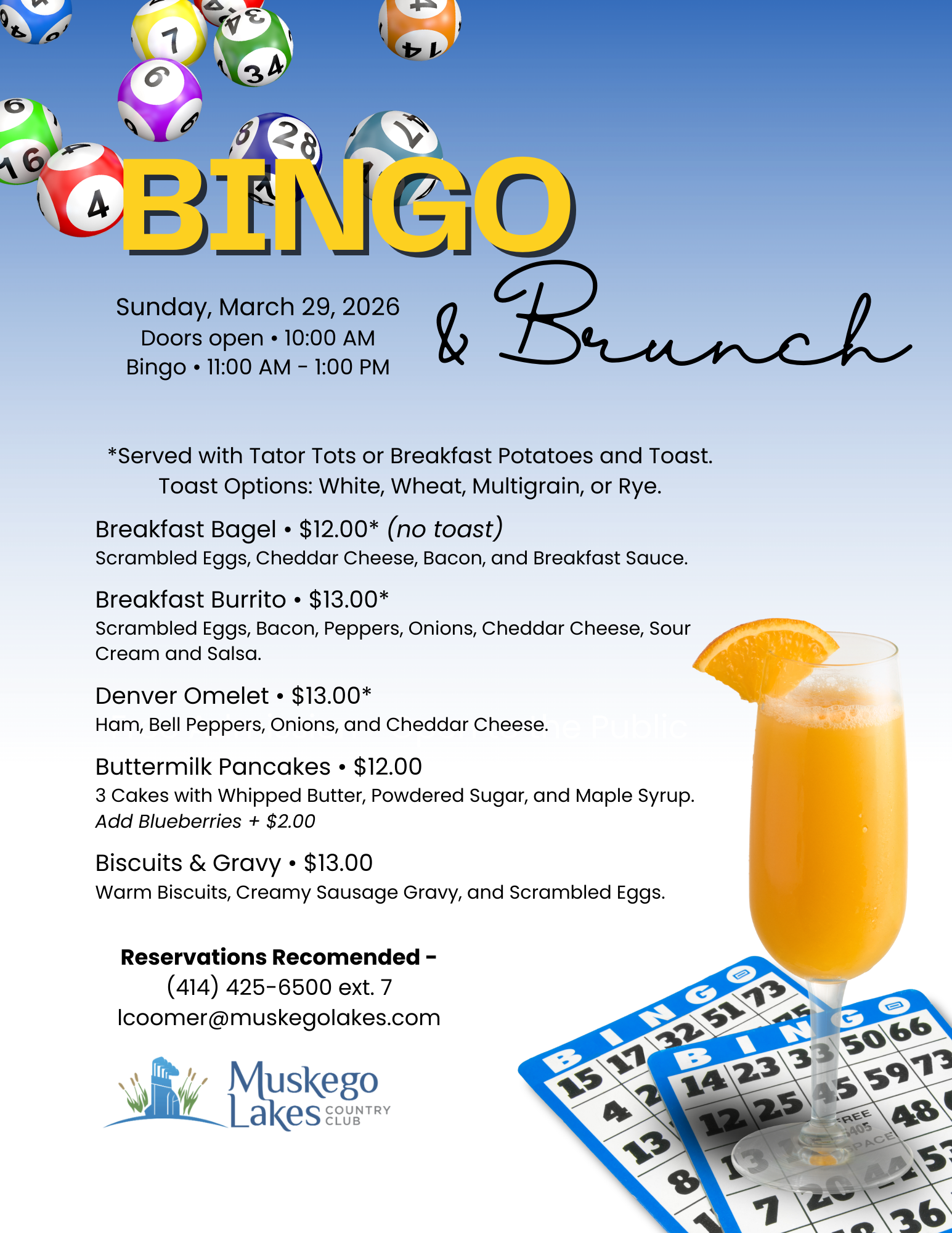 Reservations Recommended – Call (414) 425-6500 ext. 7 or email [email protected]